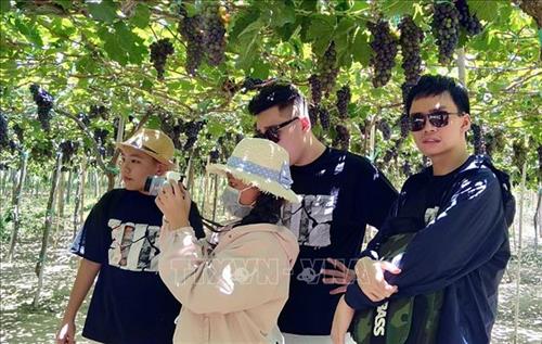 Du khách tham quan vườn nho Ba Mọi tại xã Phước Thuận, huyện Ninh Phước. Ảnh: Công Thử - TTXVN