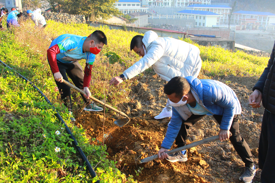 Du khách trồng cây tại thôn Lô Lô Chải, xã Lũng Cú (Đồng Văn)