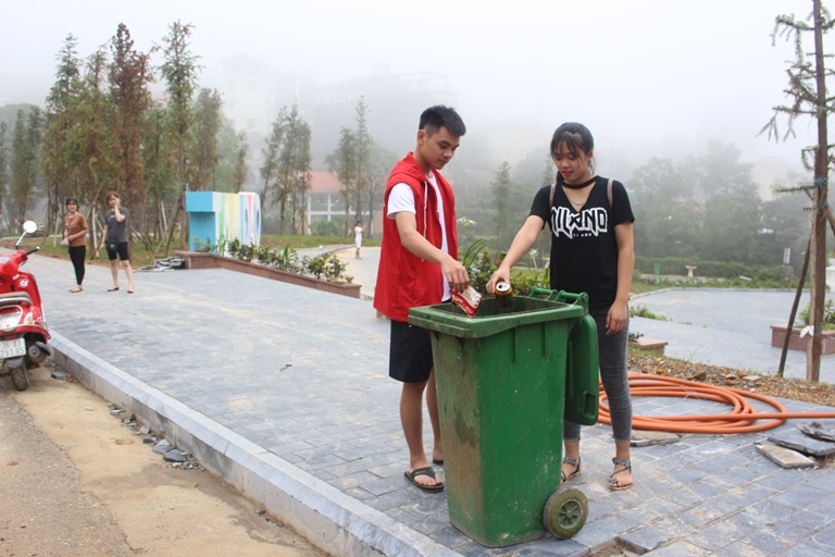Bỏ rác đúng nơi quy định là cách hành xử văn minh mỗi khi đi du lịch. (Ảnh chụp tại Khu du lịch Tam Đảo). Ảnh: Kim Ly